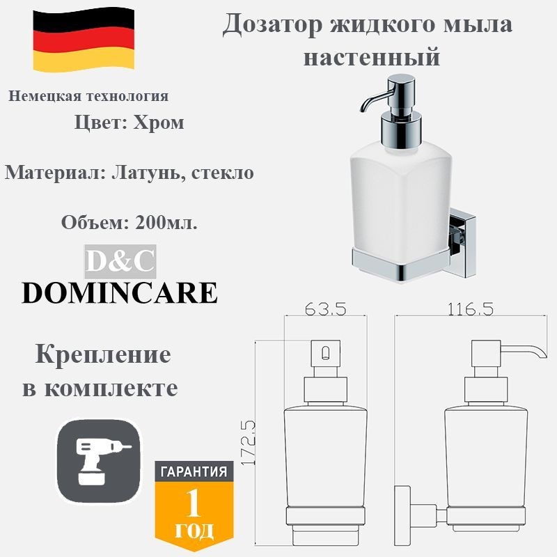 Настенный дозатор для жидкого мыла D&C Domincare DC8927CR (хром)