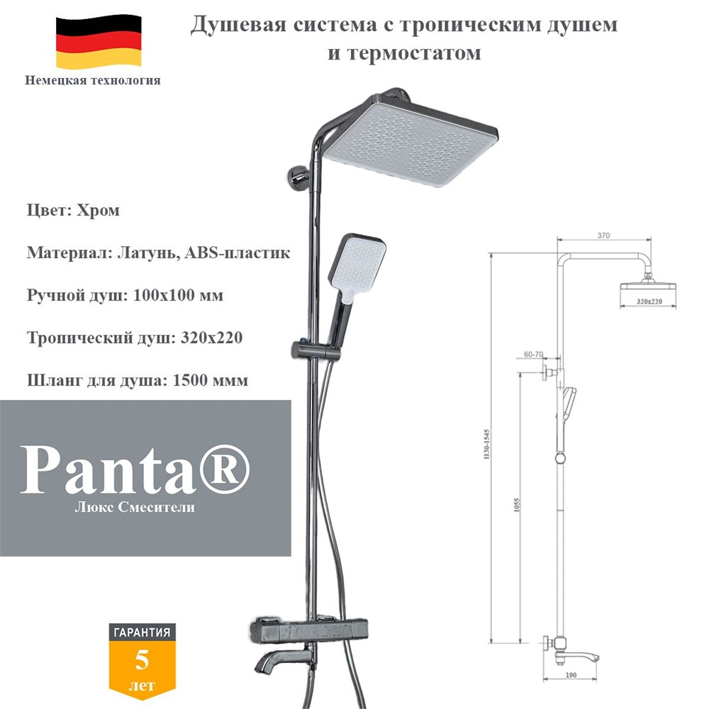 Душевая система с термостатом и тропическим душем Panta PT739925CR хром
