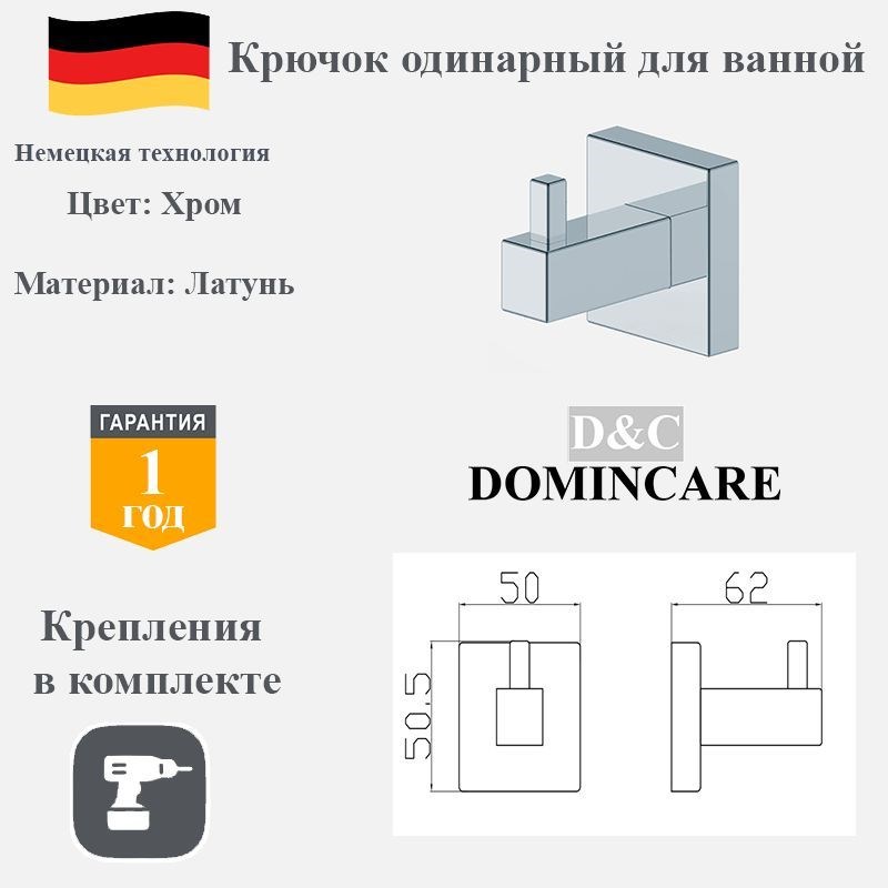 Крючок одинарный для ванной латунный D&C Domincare DC8905-1CR хром