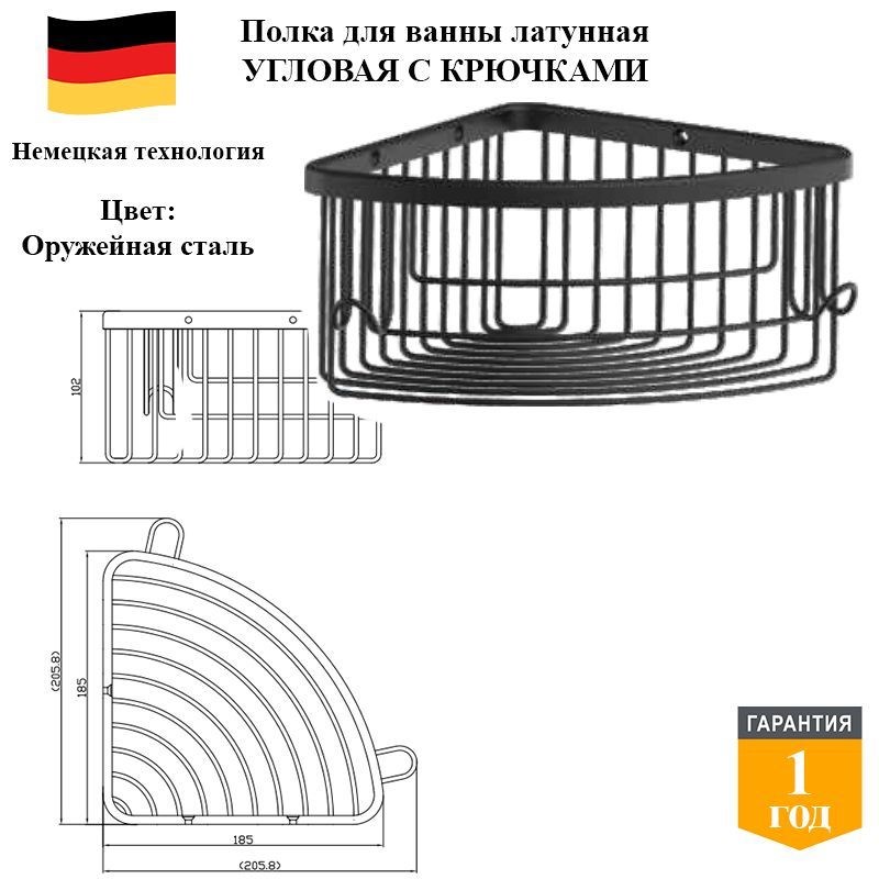 Полка угловая латунная с крючками в ванную D&C Domincare DC4133BGM оружейная сталь
