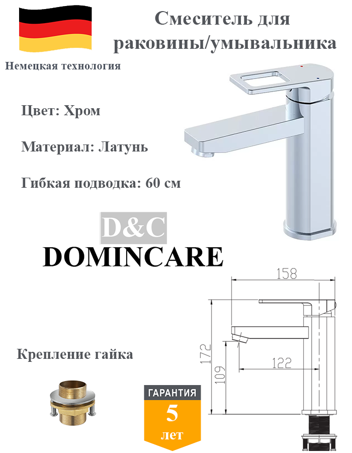 Смеситель для раковины латунный D&C Domincare DC01010CR хром