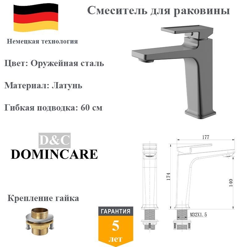 Смеситель для раковины D&C Domincare DC01111BGM в цвете «оружейная сталь»
