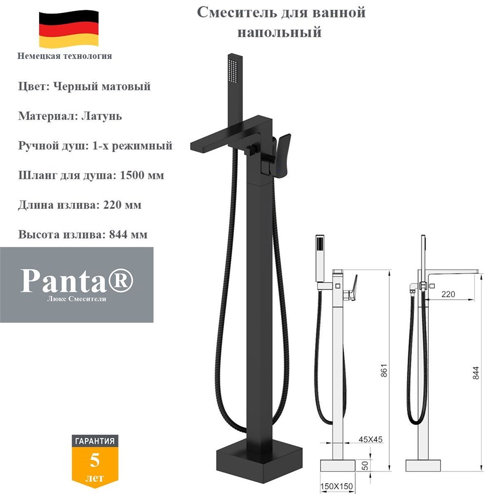 Смеситель для ванны напольный Panta PT649006MB черный матовый