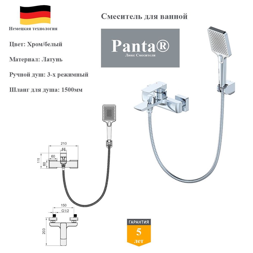Смеситель для ванны Panta PT639003CBW (хром с белым)
