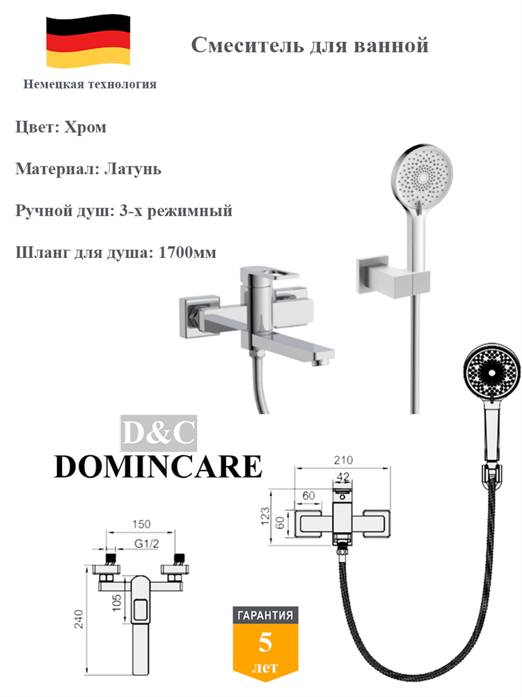 Смеситель для ванны со смесителем D&C Domincare DC01032CR хром