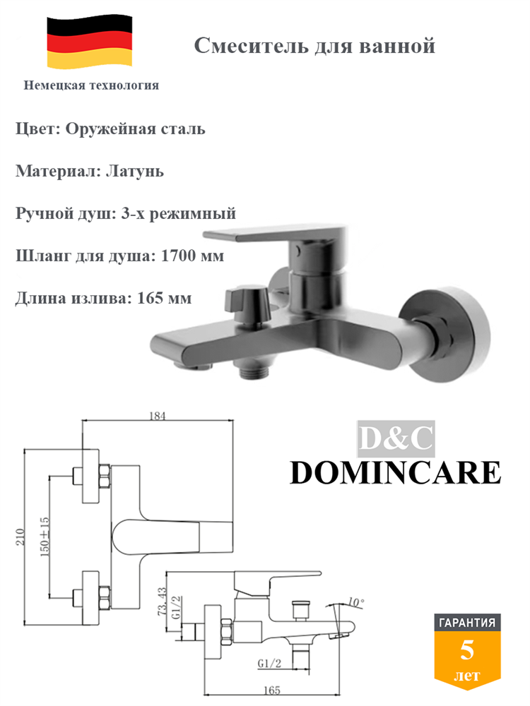 Смеситель для ванны D&C Domincare DC01330BGM (оружейная сталь)